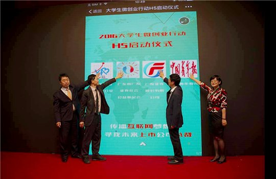 4月27日,“2016大学生微创业行动”启动仪式在北京举行。广发证券股份有限公司监事长、广东省广发证券社会公益基金会理事吴钊明,中国青年报社社长、总编辑张坤,中国青年报社副总编辑、KAB全国推广办公室总干事董时等领导共同启动了2016年大学生微创业行动。